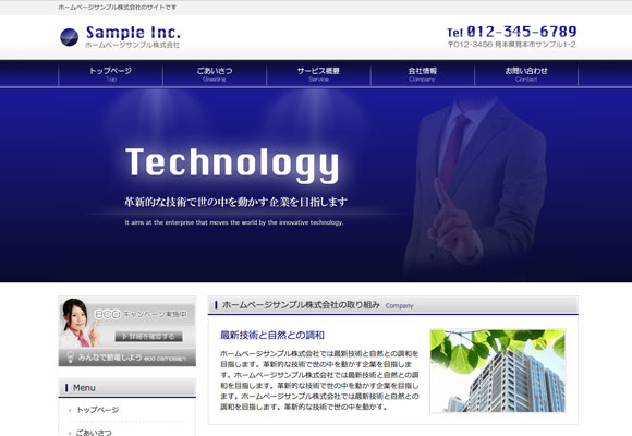 クールできっちりとしたイメージですので会社サイトとして使いやすいホームページテンプレートです。ビジネスサイトや不動産サイトでもご利用頂けるデザインです。
