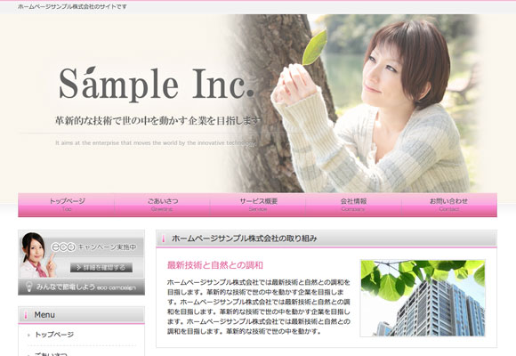 ナチュラルで清潔感のあるデザインで、好感のあるデザインです。美容系、医療系、企業サイトでも使いやすいデザインテンプレートです。