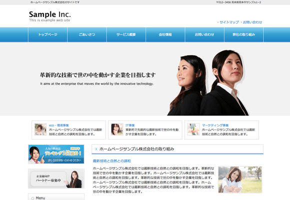 ポップで明るいデザインですのでショップ系サイトとしてや企業サイトとしてご利用頂けるホームページテンプレートです。