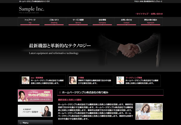黒背景の引き締まったデザインのホームページテンプレートです。