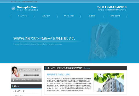 クールなデザインで会社概要サイトやビジネスサイト、医療系サイトなどでご利用頂けるホームページテンプレートです。