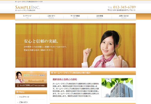 スタンダードなデザインで特に人気のあるホームページテンプレートです。好印象を与えるデザインですので企業サイトに最適なホームページテンプレートです。