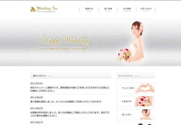 ウェディング向けのウェブサイトにご利用頂けるホームページテンプレートとなっております。エステ系などでも利用しやすいデザインです。