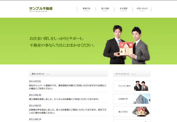 不動産向けのウェブサイトにご利用頂けるホームページテンプレートとなっております。企業サイトなどでも利用しやすいデザインです。