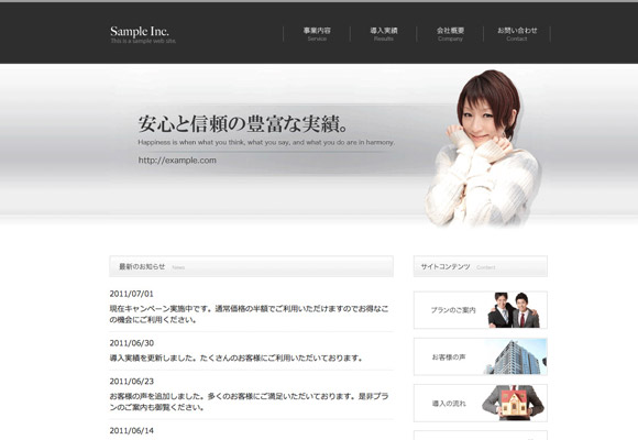 企業サイト向けのウェブサイトにご利用頂けるホームページテンプレートとなっております。士業・医療機関(病院・歯科医院)等でも使用可能なデザインです。