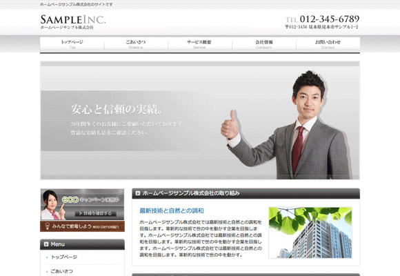 シンプルで様々な用途で使用できるホームページテンプレートです。ミニマルなデザインですのでカスタマイズもしやすくなっております。