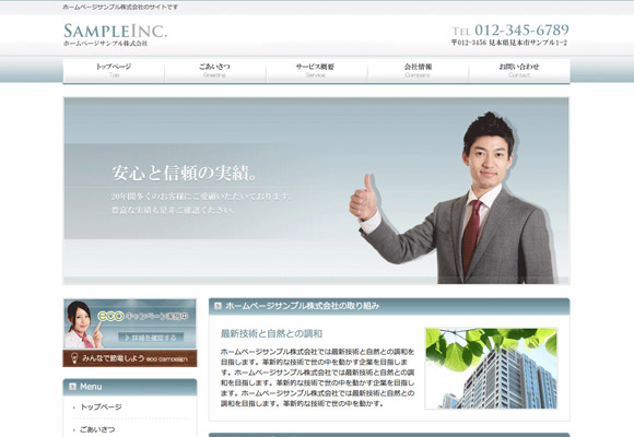 シンプルで様々な用途で使用できるホームページテンプレートです。ミニマルなデザインですのでカスタマイズもしやすくなっております。