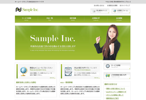 スタンダードなデザインで特に人気のあるホームページテンプレートです。好印象を与えるデザインですので企業サイトに最適なホームページテンプレートがです。