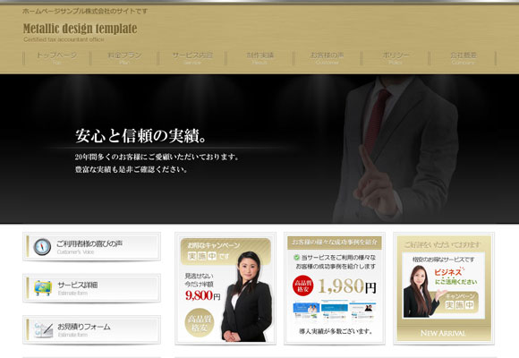 メタリックなデザインのテンプレートで工業系などに最適なホームページテンプレートです。