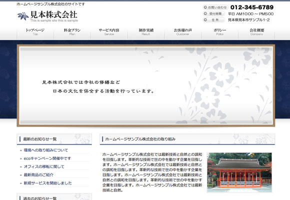 和風デザインのホームページテンプレートです。和風のデザインですので日本料理店、居酒屋、寺社、神社などでご利用いただけます。