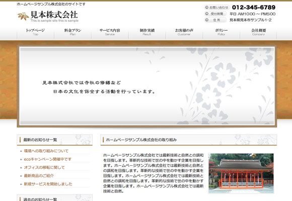 和風デザインのホームページテンプレートです。和風のデザインですので日本料理店、居酒屋、寺社、神社などでご利用いただけます。