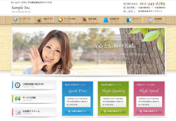 自然のテイストを取り入れたデザインです。ナチュラルな質感のテンプレートとなっております。