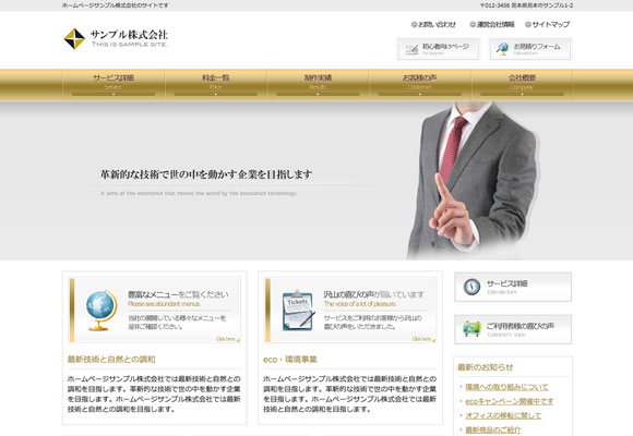 ゴージャスなデザインのホームページテンプレートです。金融系、株式関係、宝石店などにご利用頂けるデザインとなっております。
