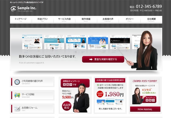 インパクトのあるデザインで様々な用途でご利用頂けるホームページテンプレートです。