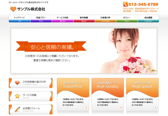カラフルで色鮮やかなデザインです。企業サイトなどでのご利用も可能ですし、美容系などでのご利用もできるホームページテンプレートとなっております。