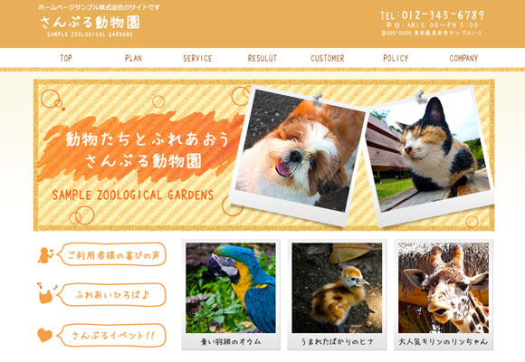 カワイイデザインのホームページテンプレートです。ペットショップや動物園などに最適なデザインです。