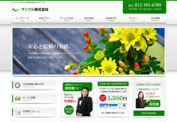 クールでスタンダードなデザインですので企業サイトに最適なホームページテンプレートです。