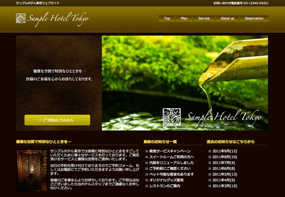 ホテル向けのホームページテンプレートです。ラグジュアリーで豪華なデザインとなっております。ホテル以外にもエステなどの美容系のサイトでもご利用いただけます。