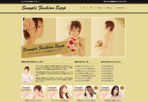 ファッション系に最適なホームページテンプレートです。ショップ向けだけでなく、エステ等の美容系のサイトでもご利用頂けるデザインとなっております。