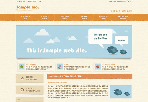 イラストを使用したカワイイデザインのホームページテンプレートとなります。学習塾や幼稚園、保育園等のホームページにデザインに最適なテンプレートです。