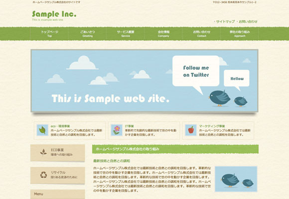 イラストを使用したカワイイデザインのホームページテンプレートとなります。学習塾や幼稚園、保育園等のホームページにデザインに最適なテンプレートです。