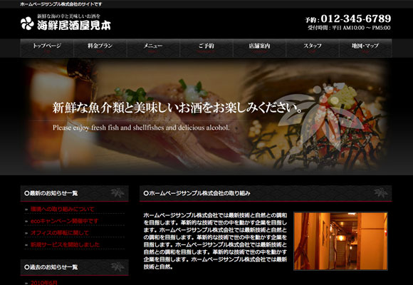 和風のデザインで居酒屋のサイトに最適なホームページテンプレートです。