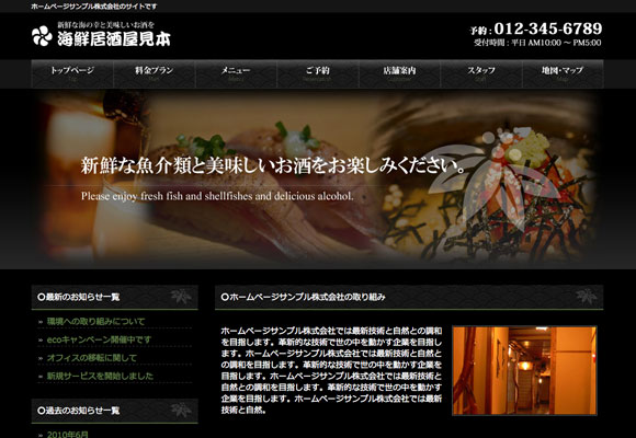 和風のデザインで居酒屋のサイトに最適なホームページテンプレートです。