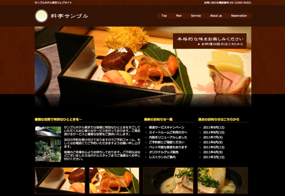 和風のデザインのホームページテンプレートです。和食料理の店舗や居酒屋などに最適なテンプレートです。