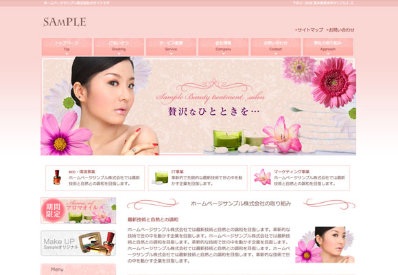エステ向けのデザインテンプレートです。高級感あふれるデザインで洗練されたデザインですのでエステ以外でもホテル、美容室などでもご利用いただけます。
