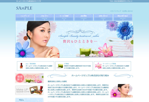 エステ向けのデザインテンプレートです。高級感あふれるデザインで洗練されたデザインですのでエステ以外でもホテル、美容室などでもご利用いただけます。
