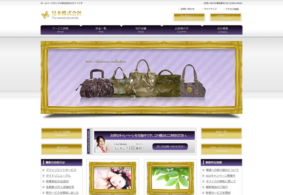 高級感あふれるデザインでショップ向け、ファッションサイト向けにご利用頂けるホームページテンプレートです。3カラムのレイアウトで情報の多いサイトに最適です。