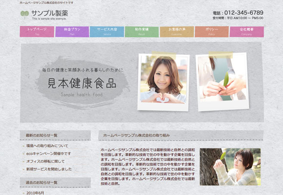 ナチュラルなデザインの中にもポップでカラフルさを取り入れたホームページテンプレートです。飲食店やショップ系でもご利用頂けるデザインとなっております。