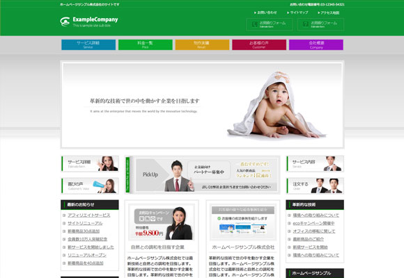 カラフルな色合いのデザインで明るく楽しい印象のホームページテンプレートです。企業サイトとしてや飲食店、ショップ系でもご利用いただけます。
