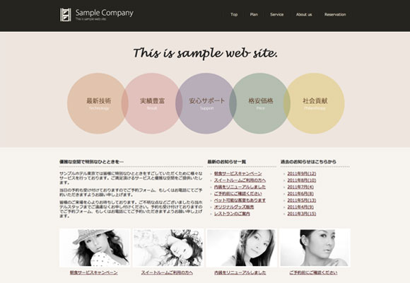 モダンでシックなデザインのホームページテンプレートテンプレートです。シンプルで必要最低限のコンテンツに抑えていますので使いやすいレイアウトとなっております。